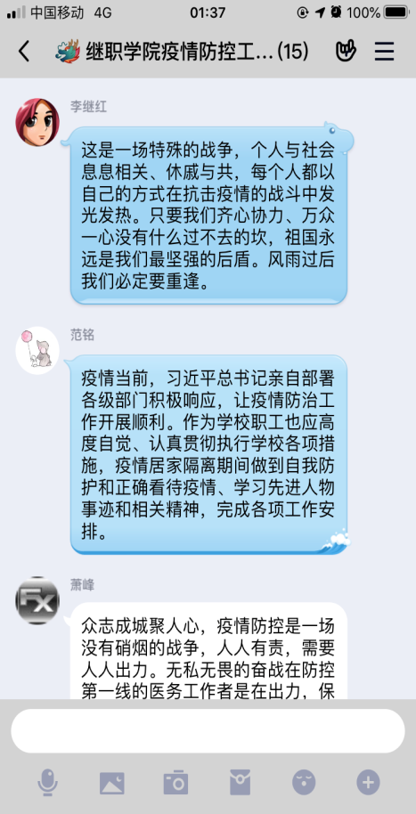 云中讯(通讯员 刘流)2月28日下午,按照党委宣传部通知要求,继职学院开展了线上“新冠肺炎疫情防控”专题学习活动,认真学习贯彻习近平总书记关于新冠肺炎疫情防控的重要讲话和指示精神,传达学习、党中央、国务院、教育部等关于新冠肺炎疫情防控的重要部署、通知及文件。全体教职工参加本次学习和研讨。