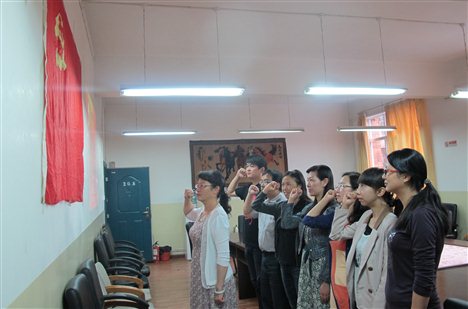 活动会上,班子成员和每一个党员都做了发言,表示将以身作则、团结各位同志,做好本职工作,服务教学、服务社会。随后所有党员面对鲜红的党旗,在领誓人卞瑶书记的带领下,庄严宣读入党誓词。