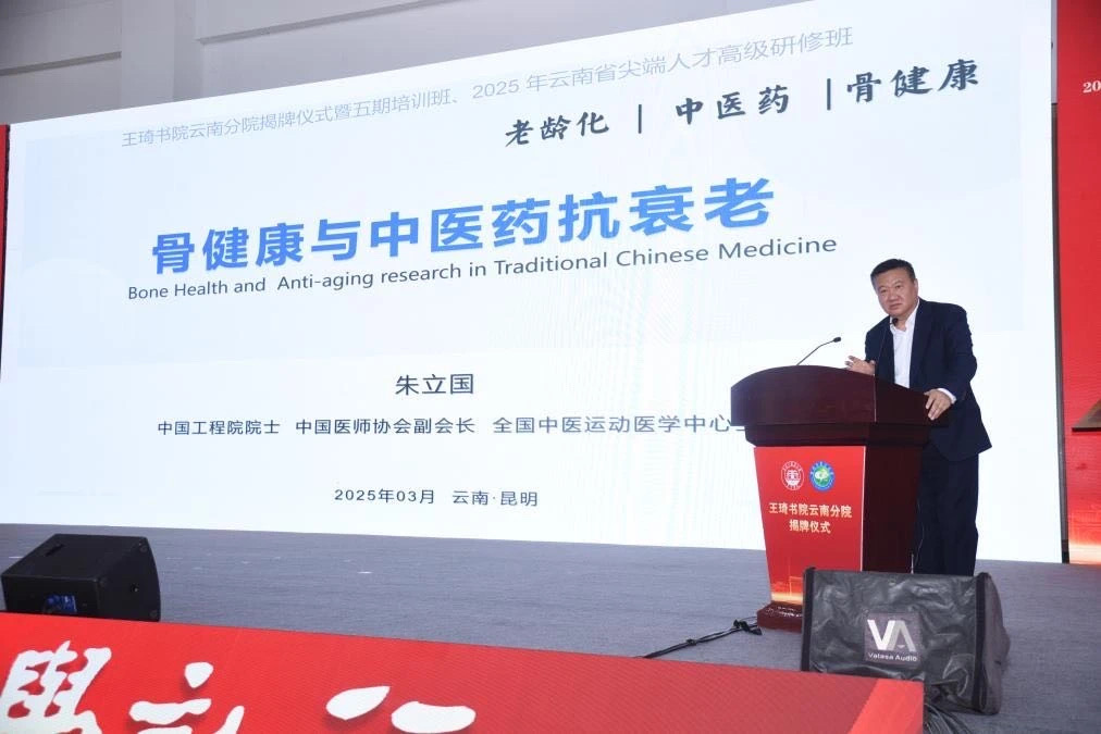 中国工程院院士、北京市中西医结合骨伤研究所教授朱立国作了题为《骨健康与中医药抗衰老》的报告。