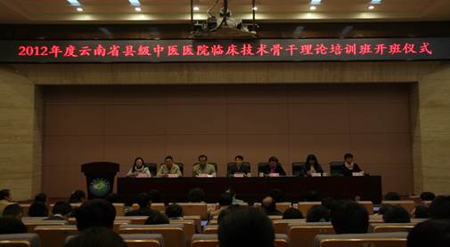 云中讯(通讯员 王璟)2013年11月25日上午,受省卫生厅的委托,云南中医学院承办,继续教育学院具体负责的2012年度云南省县级中医医院临床技术骨干理论培训班开班仪式在我校呈贡校区翰墨楼报告厅举行。开班仪式由副校长熊磊教授主持。省卫生厅副厅长郑进教授、校长李玛琳教授等领导出席。此次培训班有学员100多名,他们是来自全省各州市基层卫生服务机构的骨干医师。
