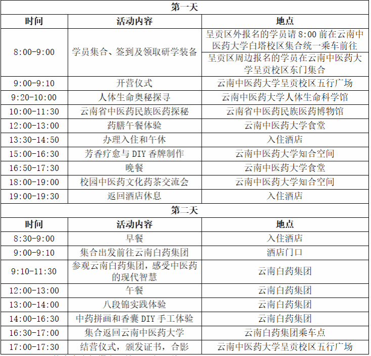 本次研学营活动得到云南省区域中医药康旅中心试点项目和昆明市区域中医药康旅中心试点项目的支持,报名参加本次研学营的小学生、初中生和高中生免收费用。
