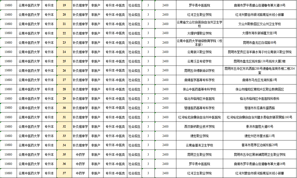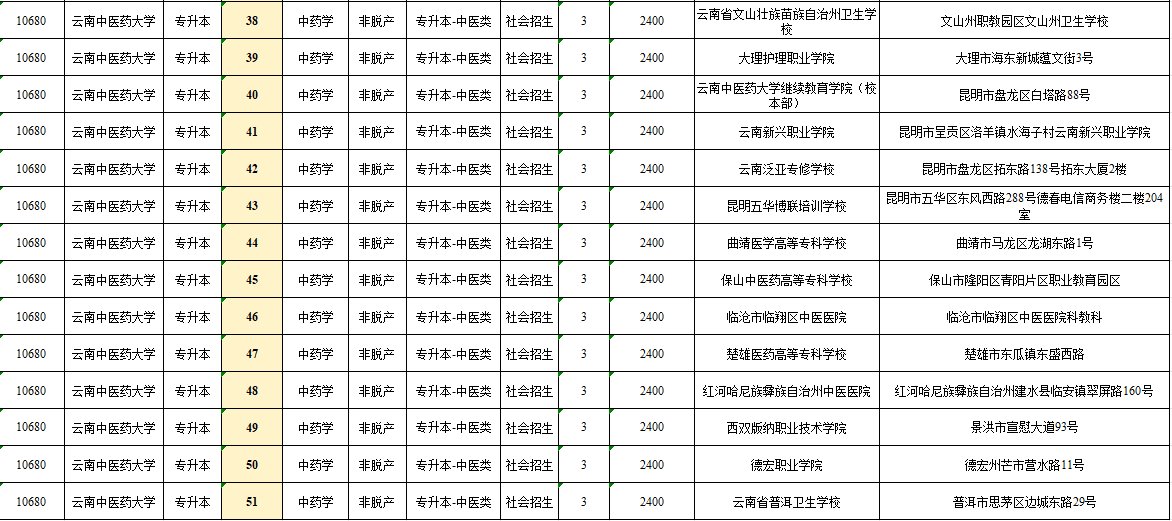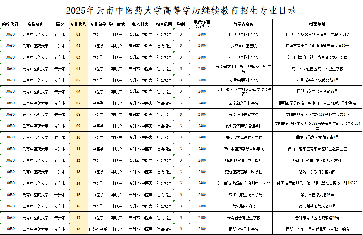 附件:2025年云南中医药大学高等学历继续教育招生专业目录