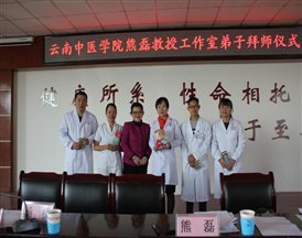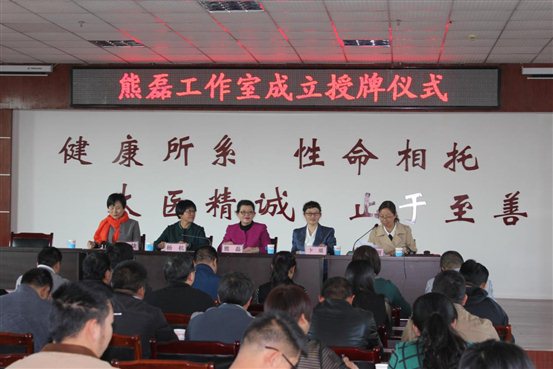 3月22日,宁洱县中医医院学术报告厅举行“熊磊工作室”授牌暨拜师仪式。云南中医学院校长熊磊教授、云南中医学院继续教育学院、职业技术学院院长卞瑶教授、针灸推拿康复学院副院长邰先桃教授、宁洱县杨杭副县长、宁洱县卫计局马方丽副局长及宁洱县中医医院领导干部和职工参加 。