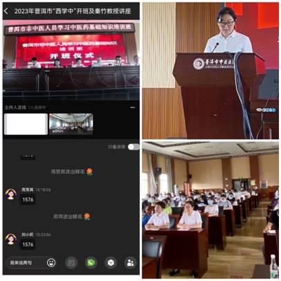 云南中医药大学副校长温伟波、继续教育学院院长吕峰、副院长伍健,普洱市卫健委主任杨冬梅、副主任洪仁伟、中医科科长邓园媛及普洱市中医医院党政领导班子成员、来自普洱市6家中医医院的90余名西医医师以线上线下结合的方式参加了开班仪式。仪式由普洱市卫健委副主任洪仁伟主持。